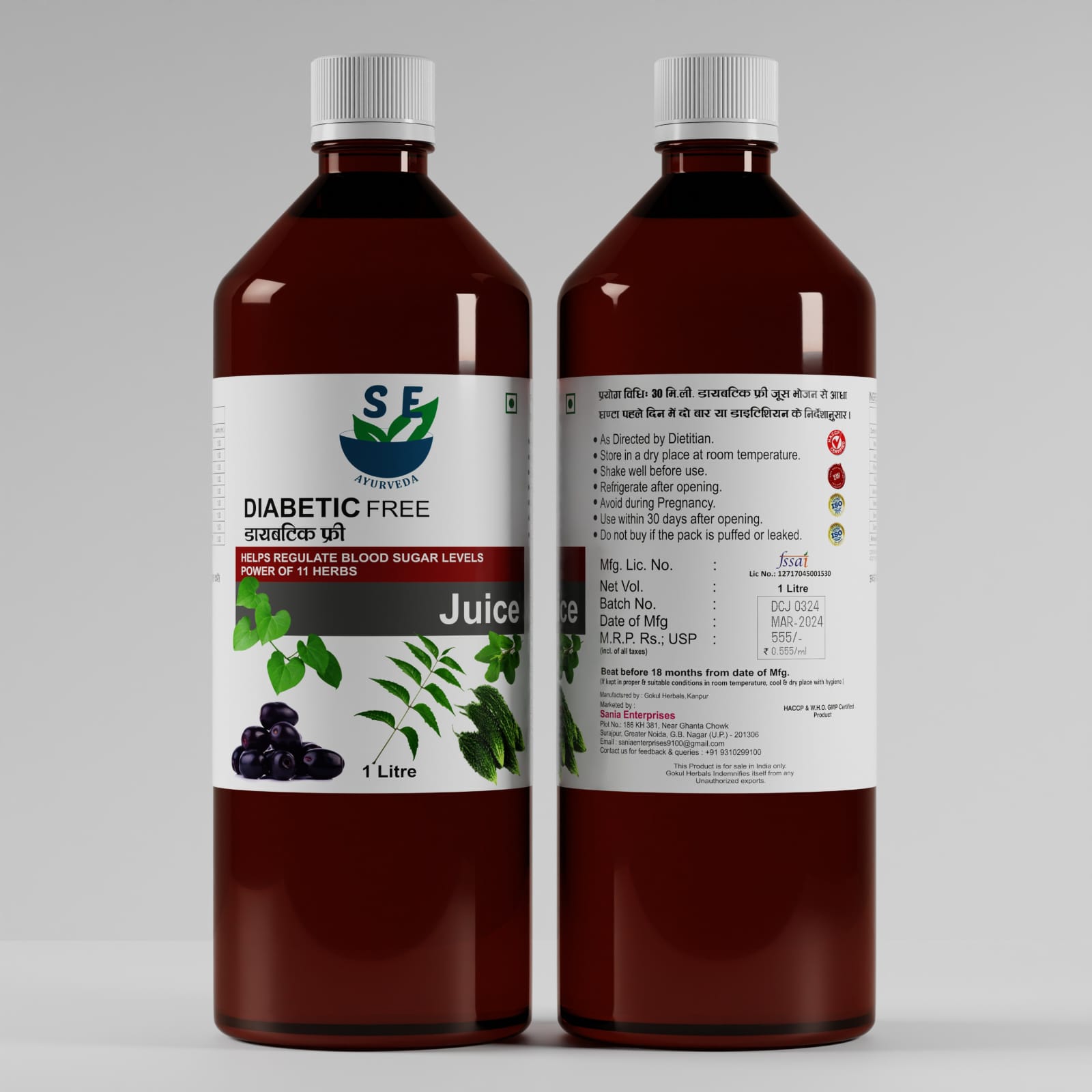 Diabetic Free Juice is a potent herbal blend of 11 Ayurvedic ingredients designed to help regulate blood sugar levels naturally. Enriched with herbs like Jamun, Karela, Neem, Giloy, and Amla, this juice supports pancreatic health, enhances insulin sensitivity, and maintains balanced glucose metabolism. It’s a safe and natural way to promote overall wellness for people managing diabetes.